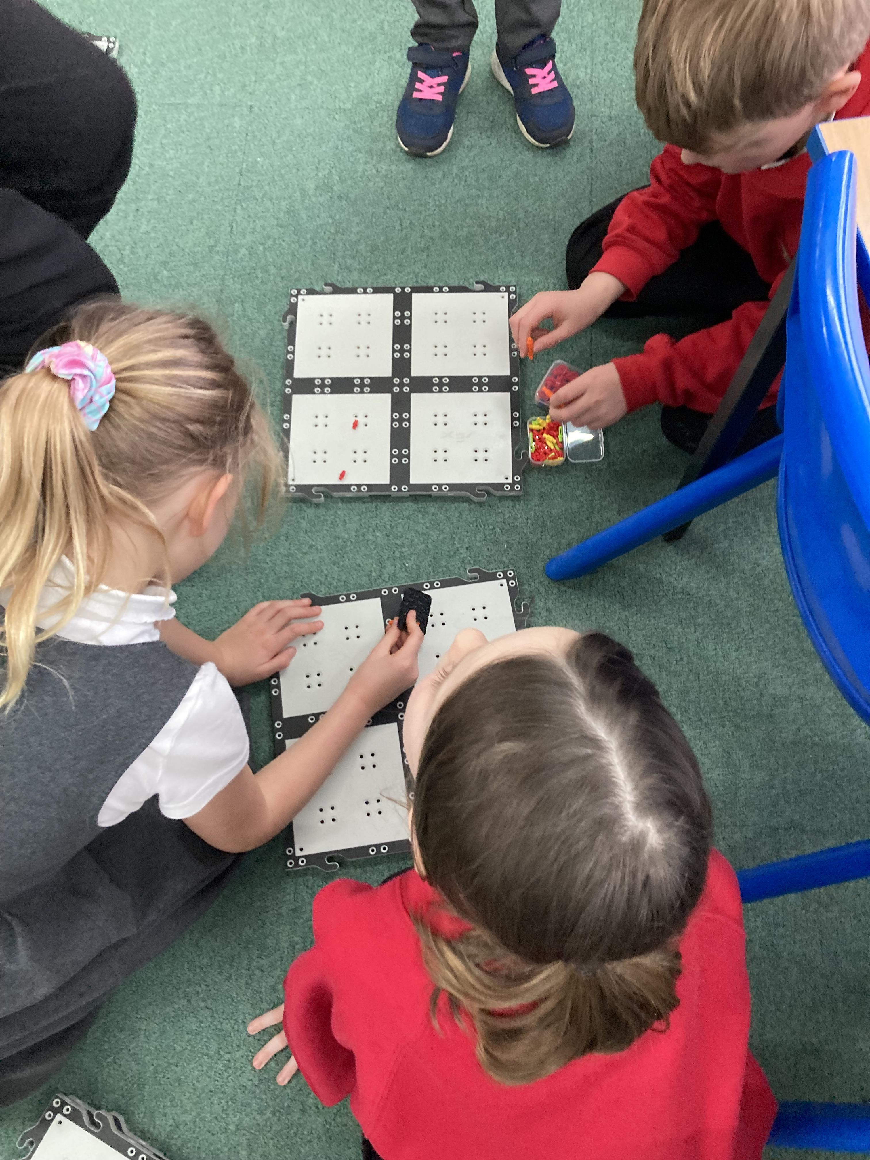 In maths we are learning to count pounds and pence. Here we are problem solving. We are trying to find all the ways to make 50p only using silver coins