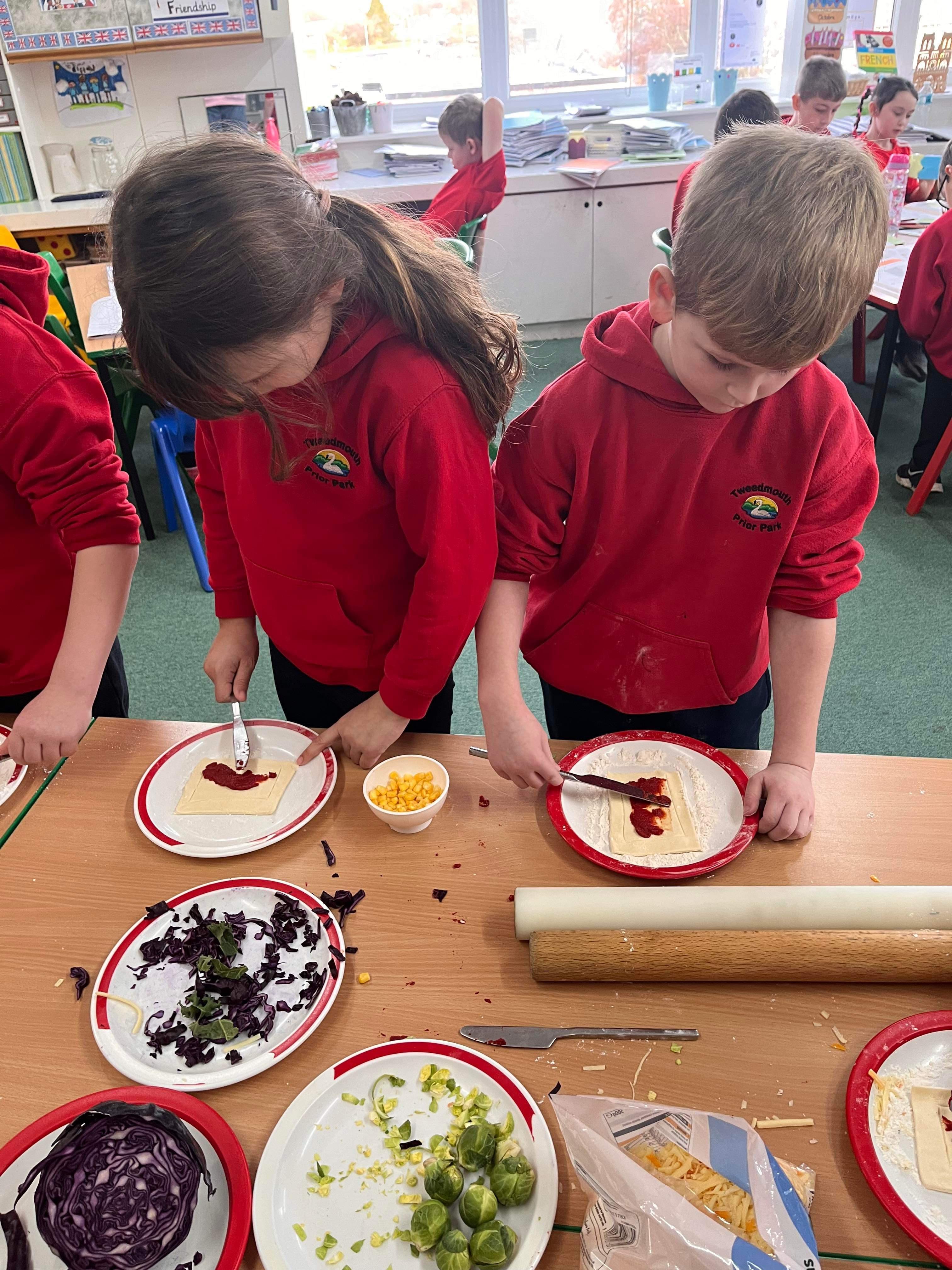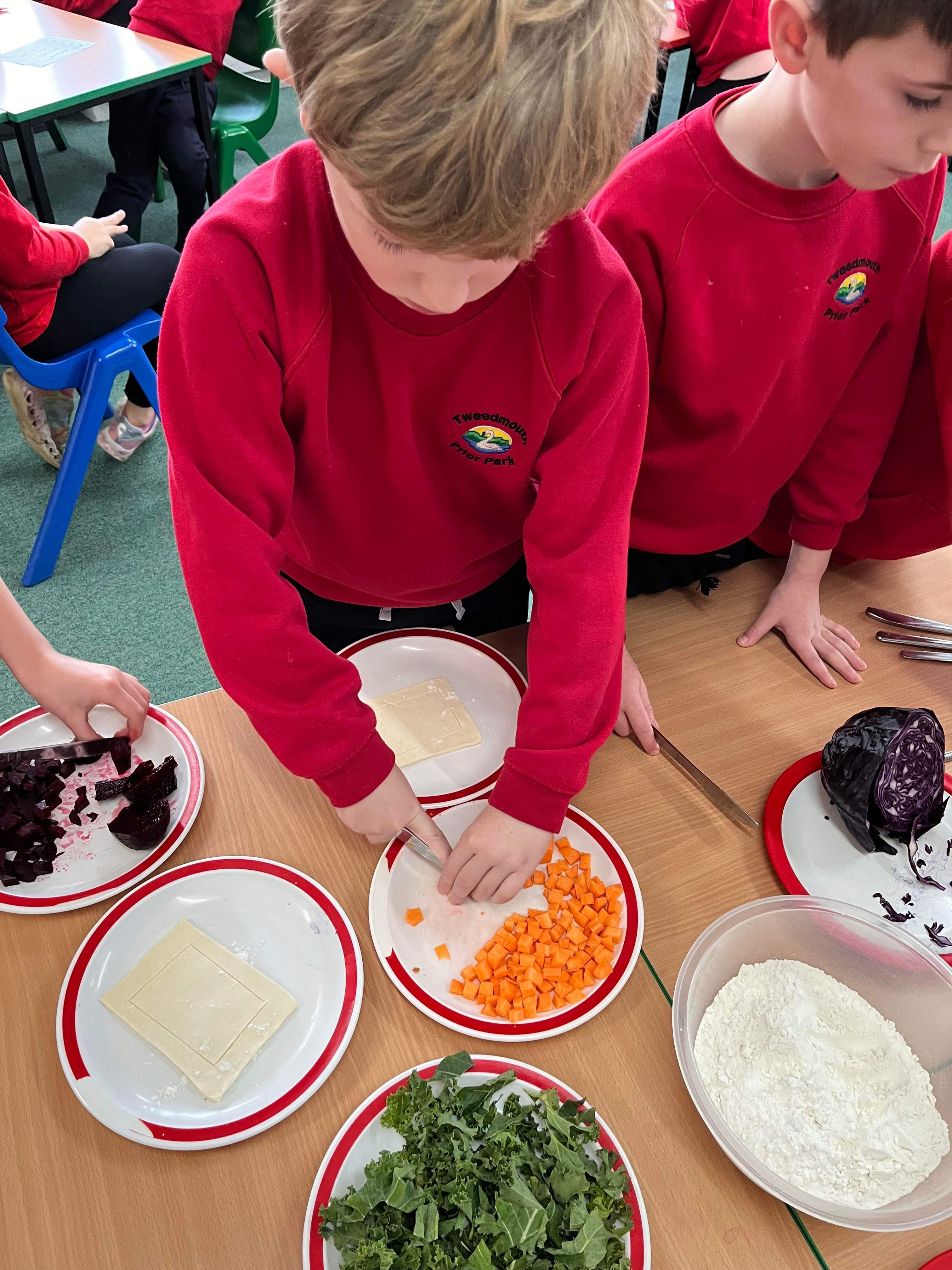 Class 3 have designed, prepared and made seasonal vegetable tarts. They had to consider the different types of vegetables they would use so that they had a wide range of nutrients.