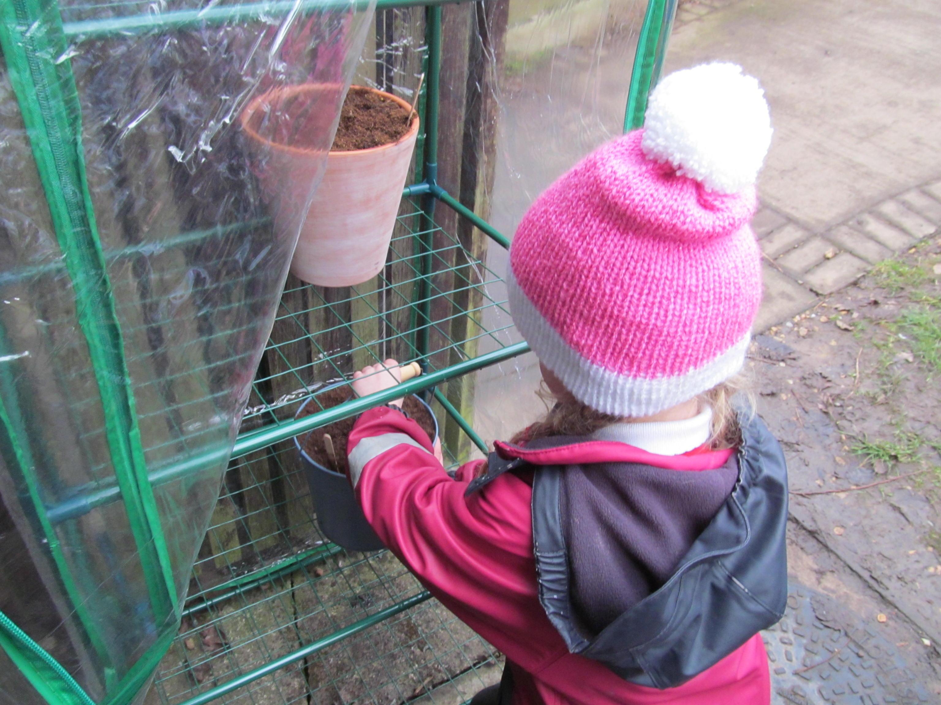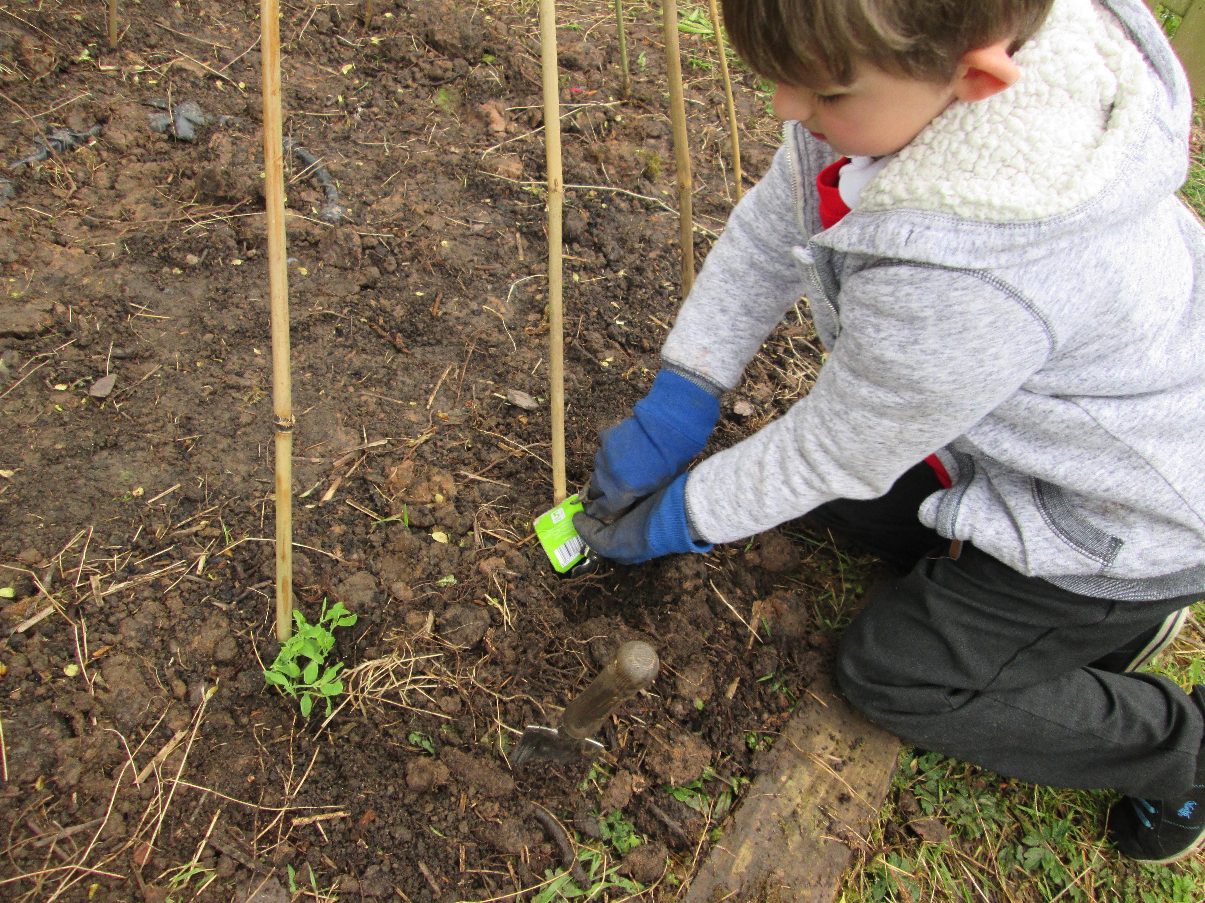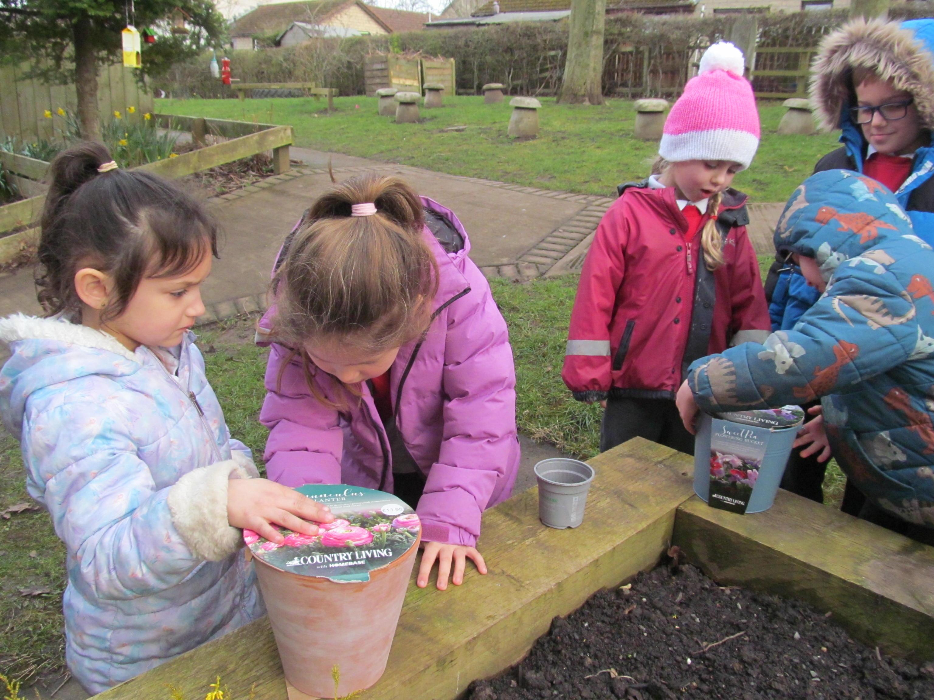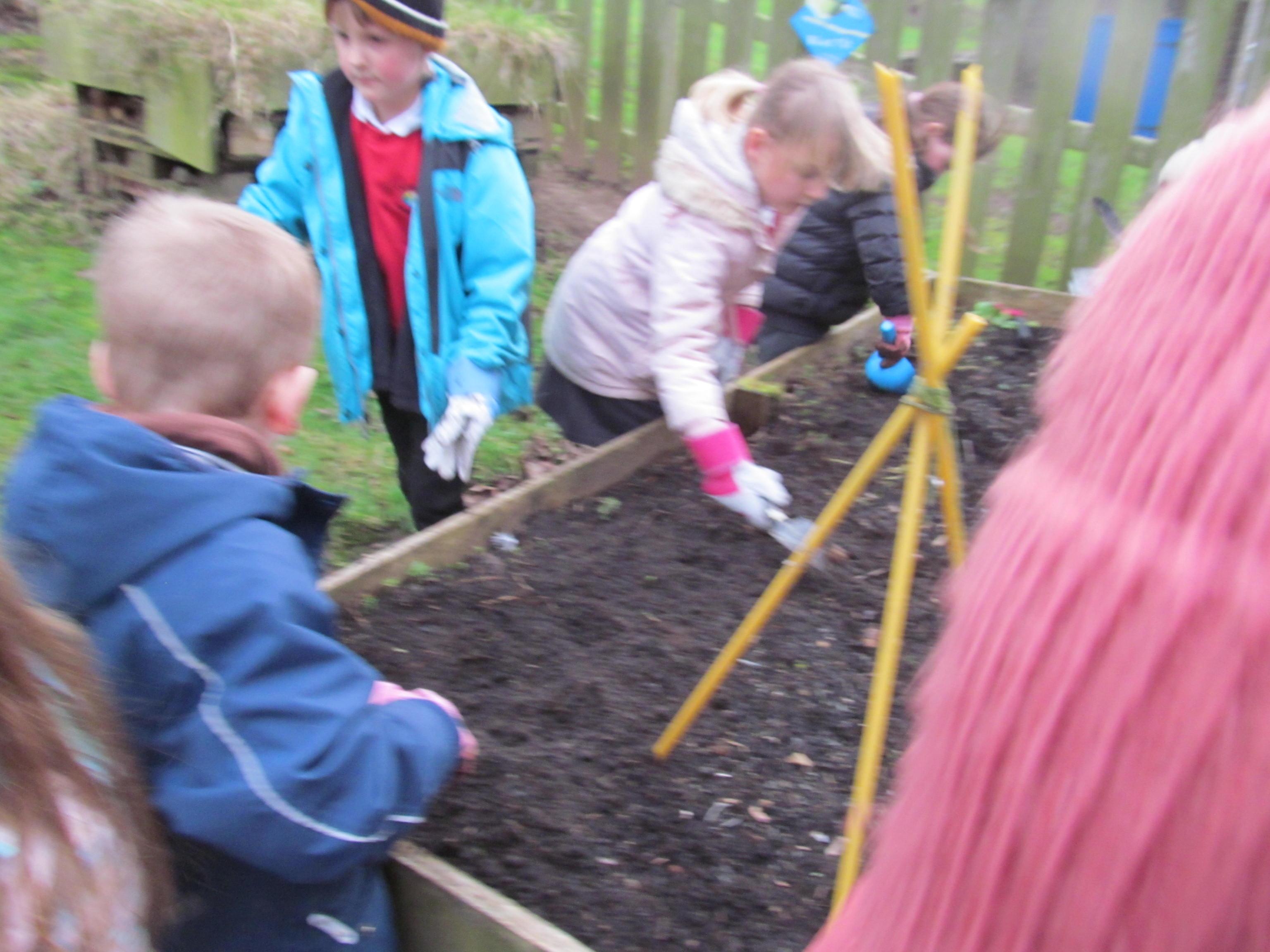 Our green fingered gardeners are now preparing the ground for our potatoes, planting up bedding plants and checking on their recently germinated seeds.