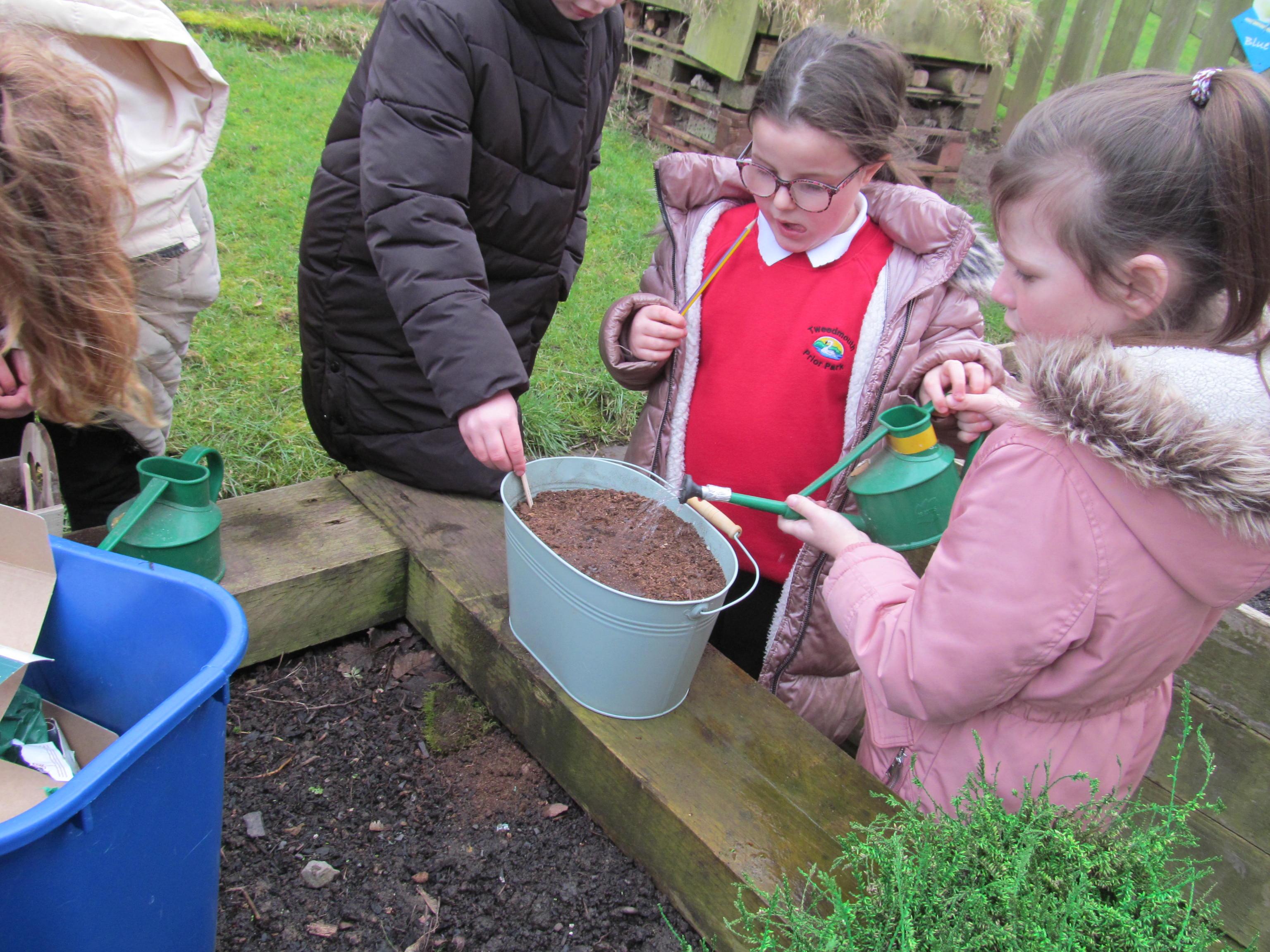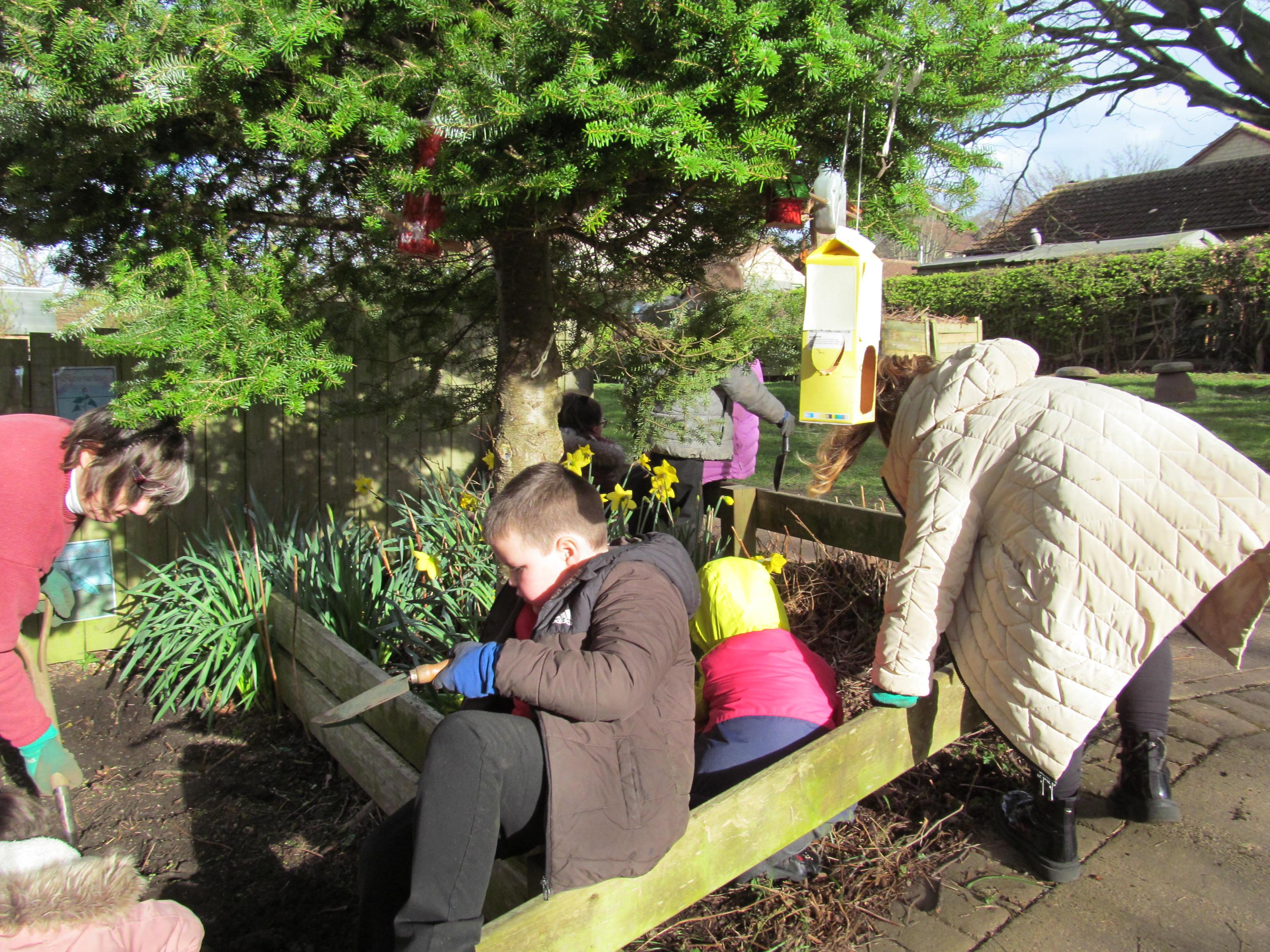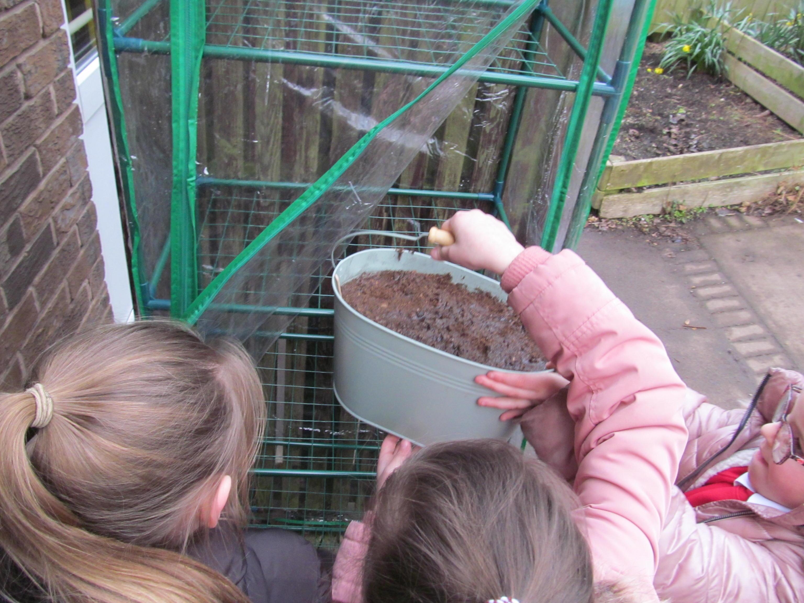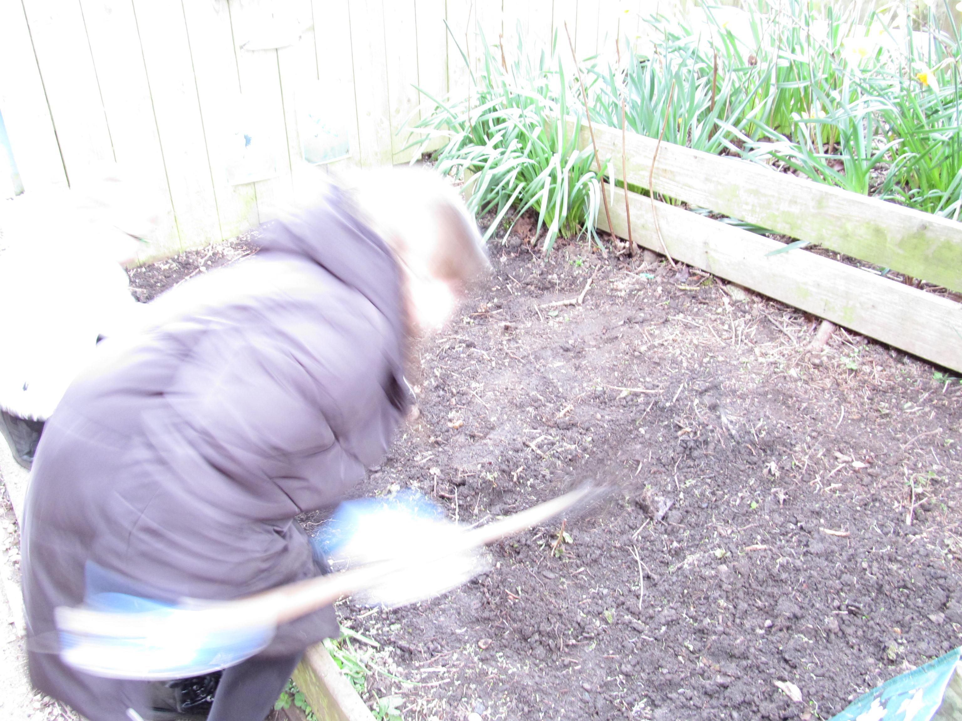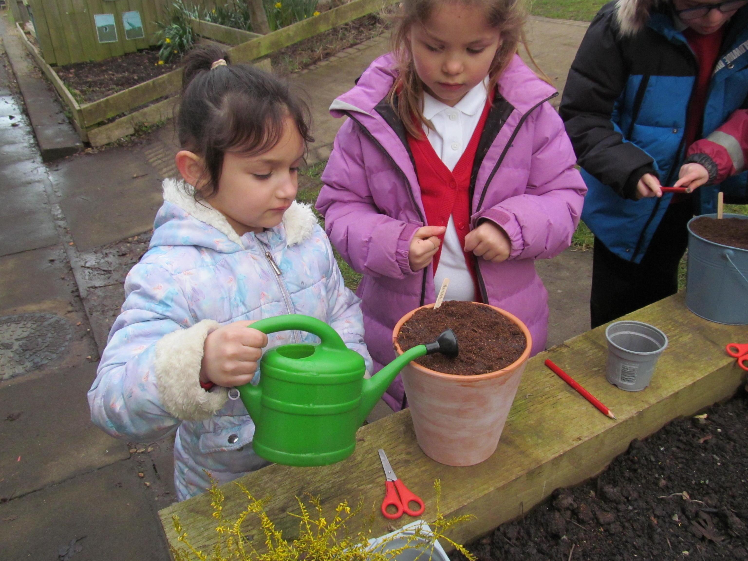 Our green fingered gardeners are now preparing the ground for our potatoes, planting up bedding plants and checking on their recently germinated seeds.