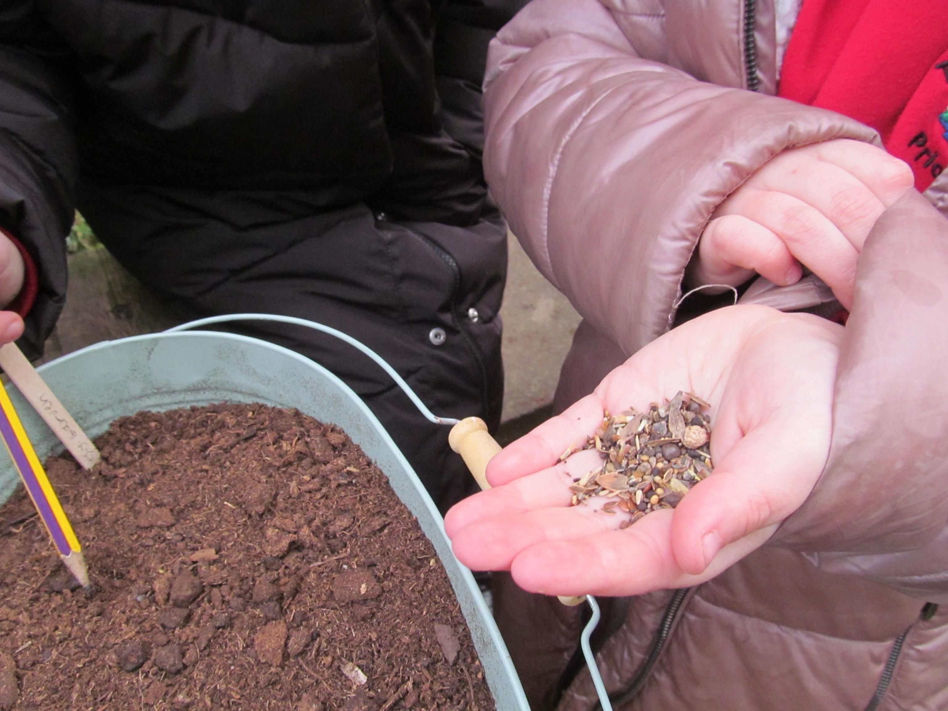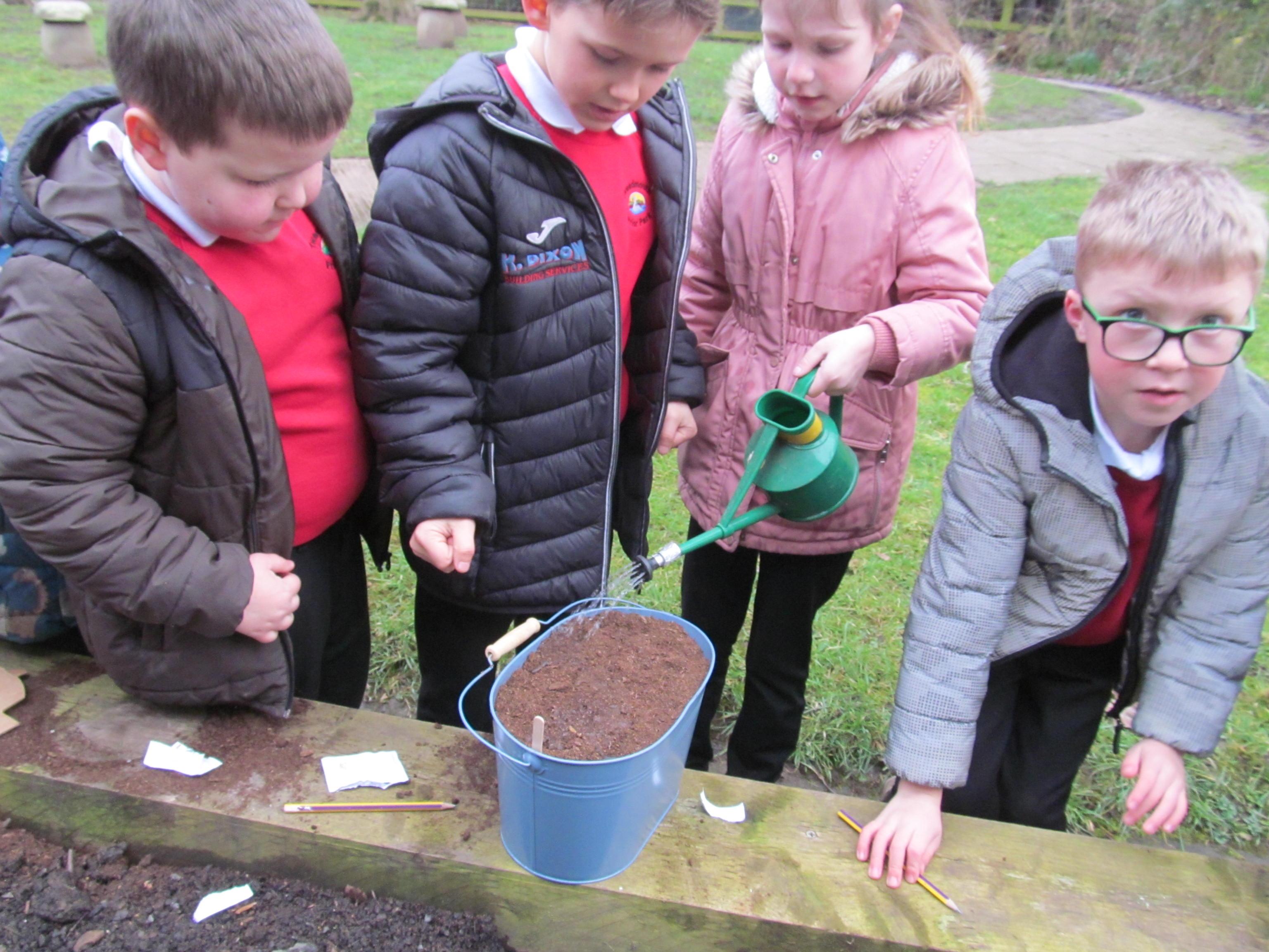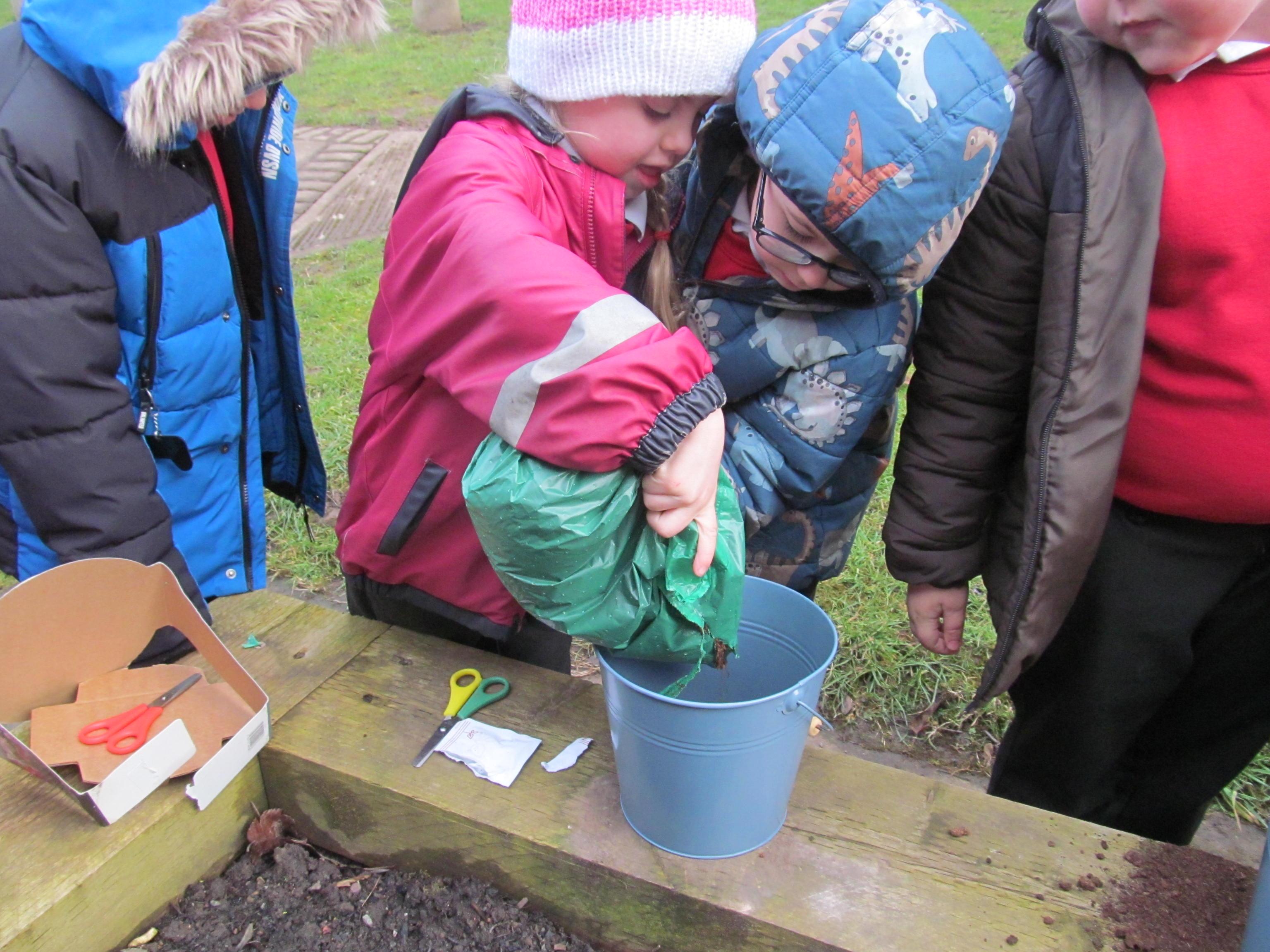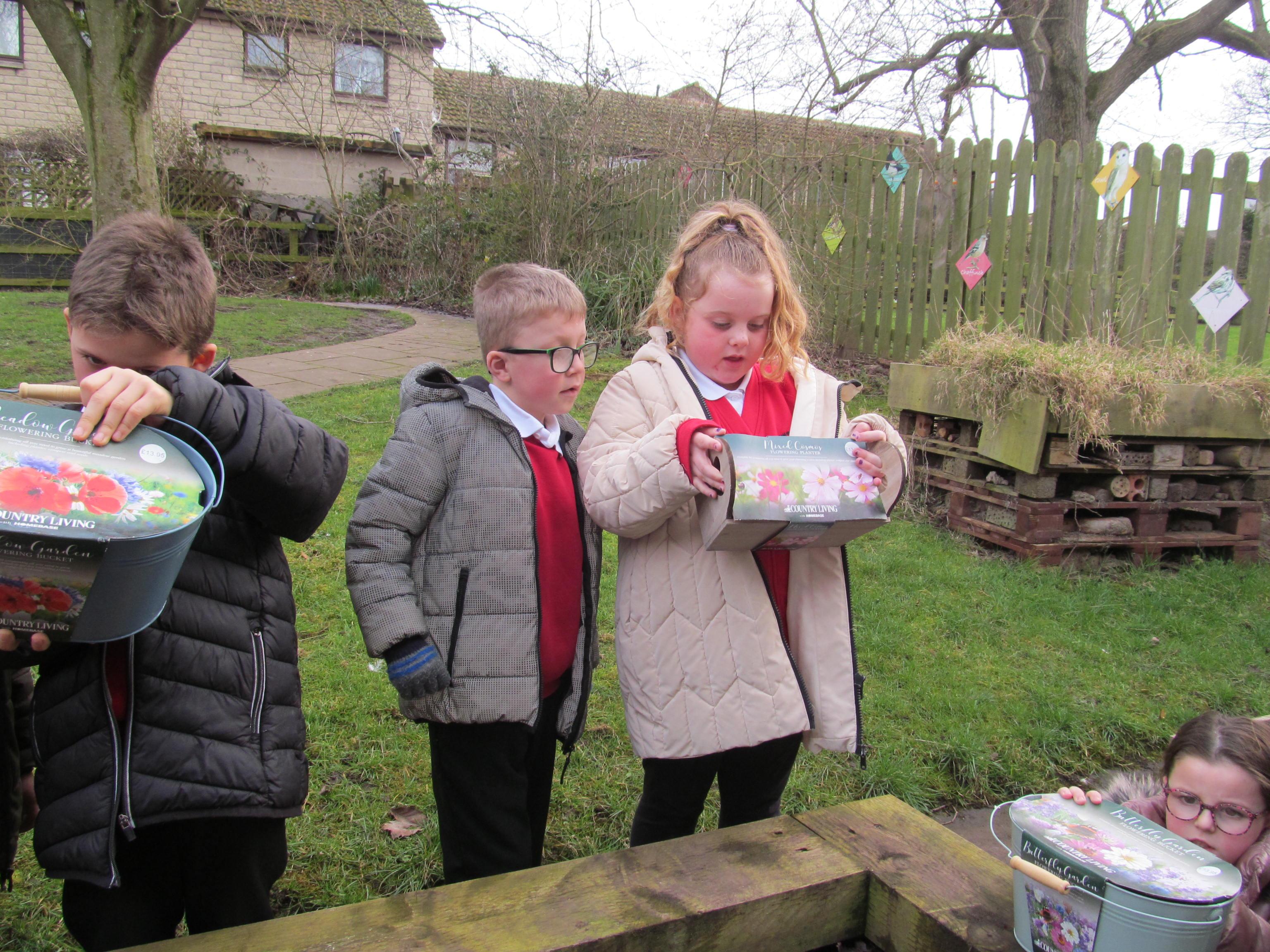 Our green fingered gardeners are now preparing the ground for our potatoes, planting up bedding plants and checking on their recently germinated seeds.