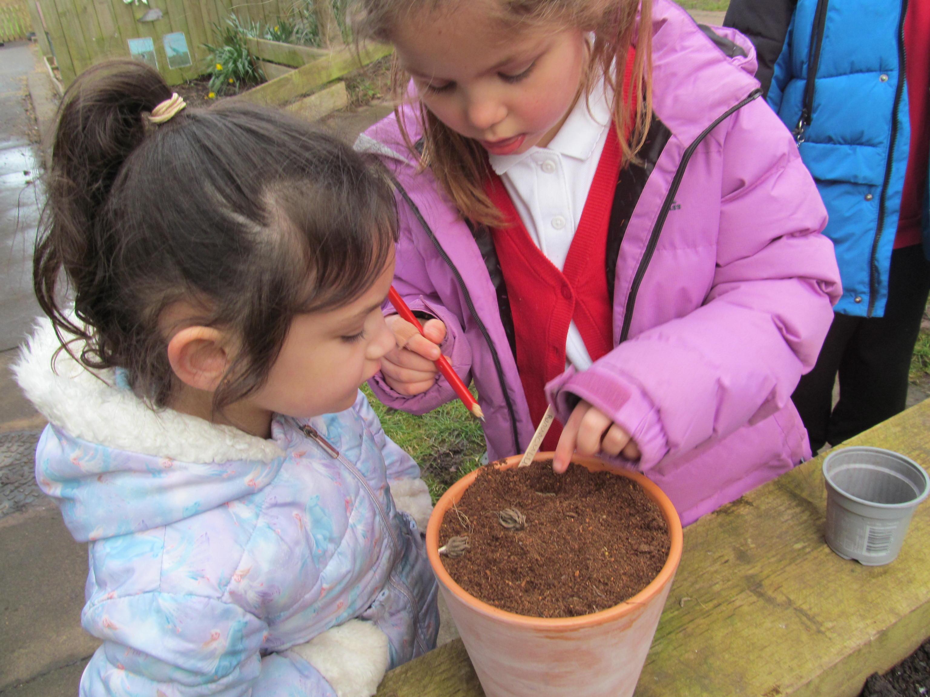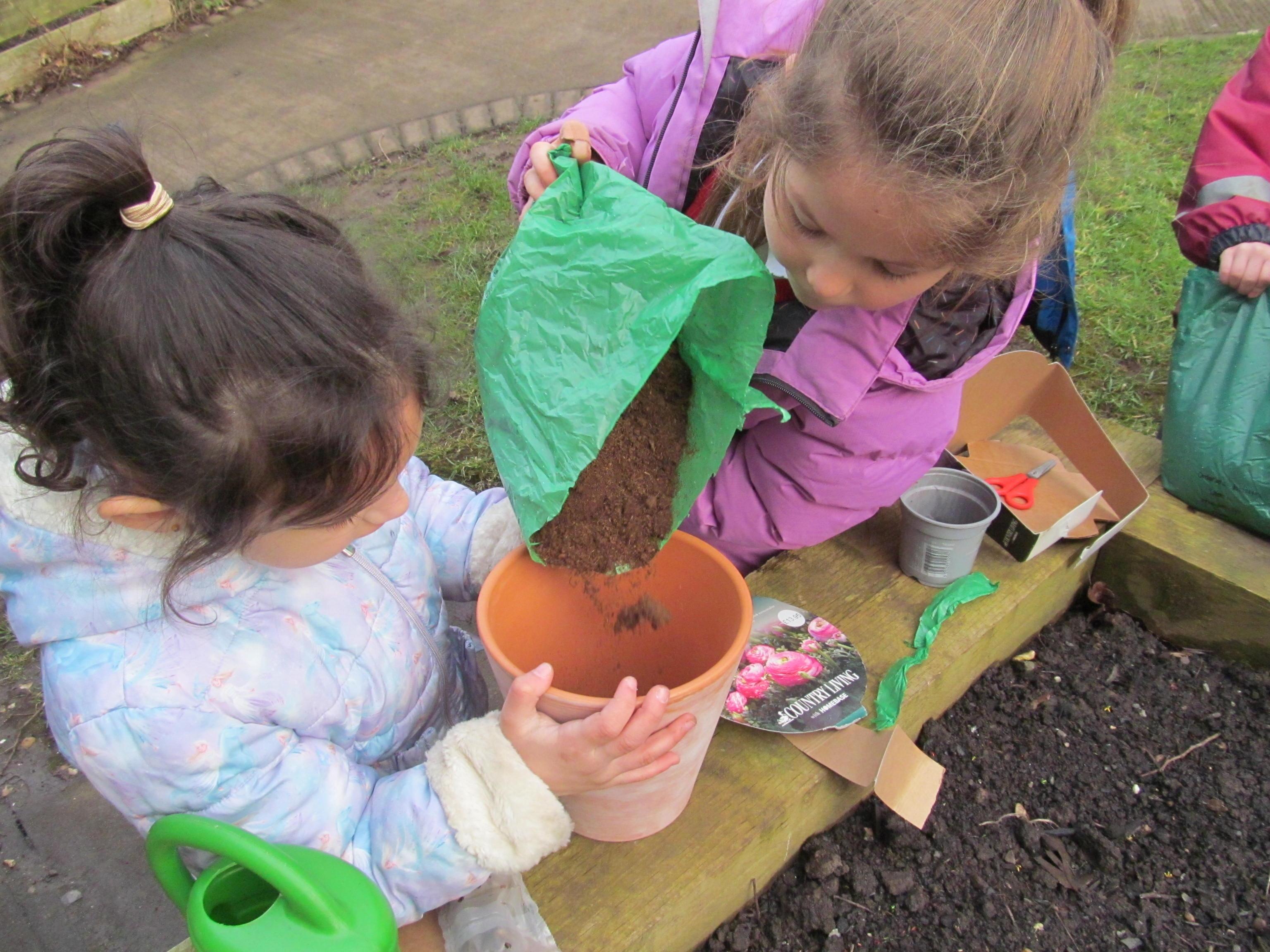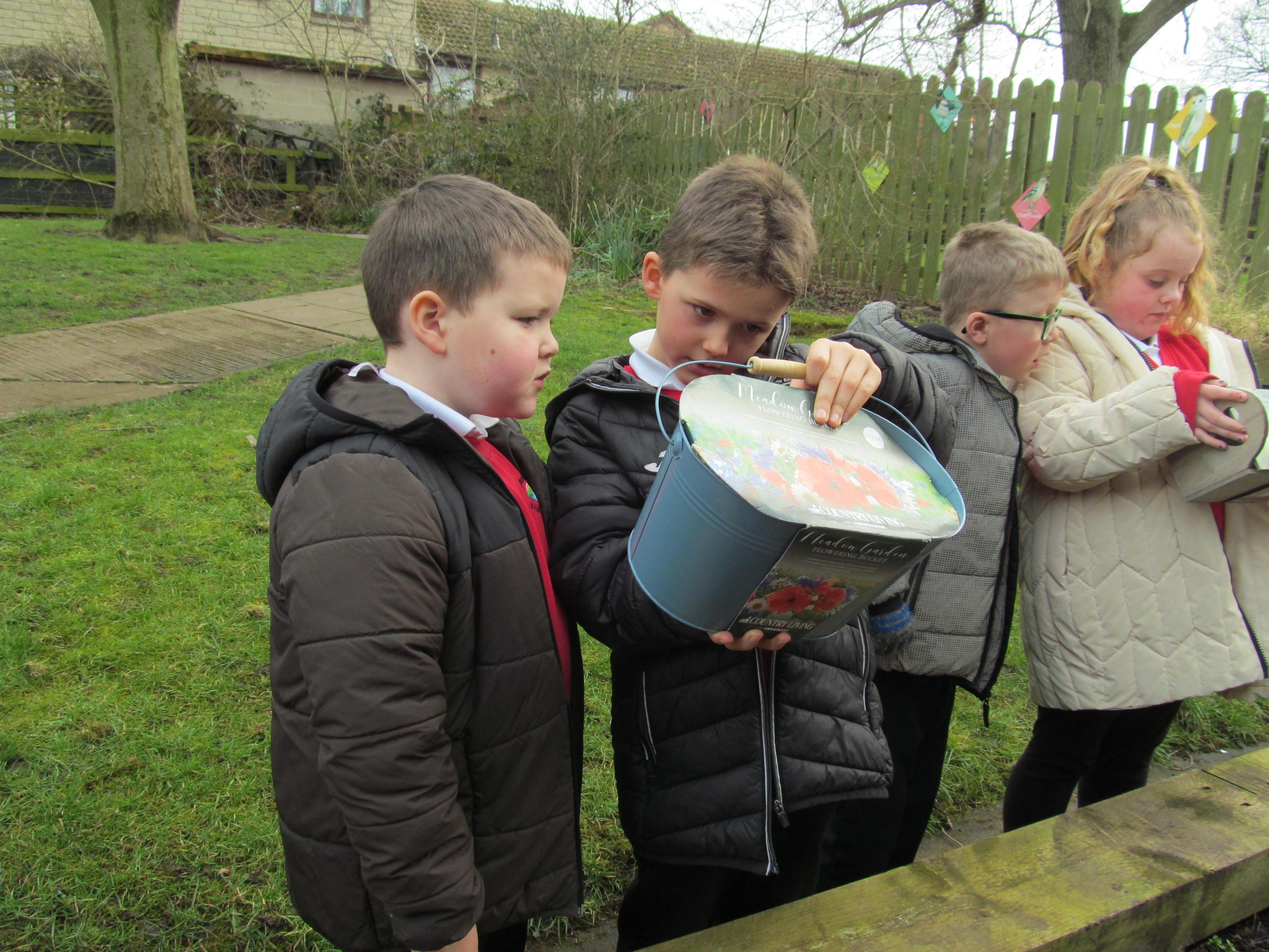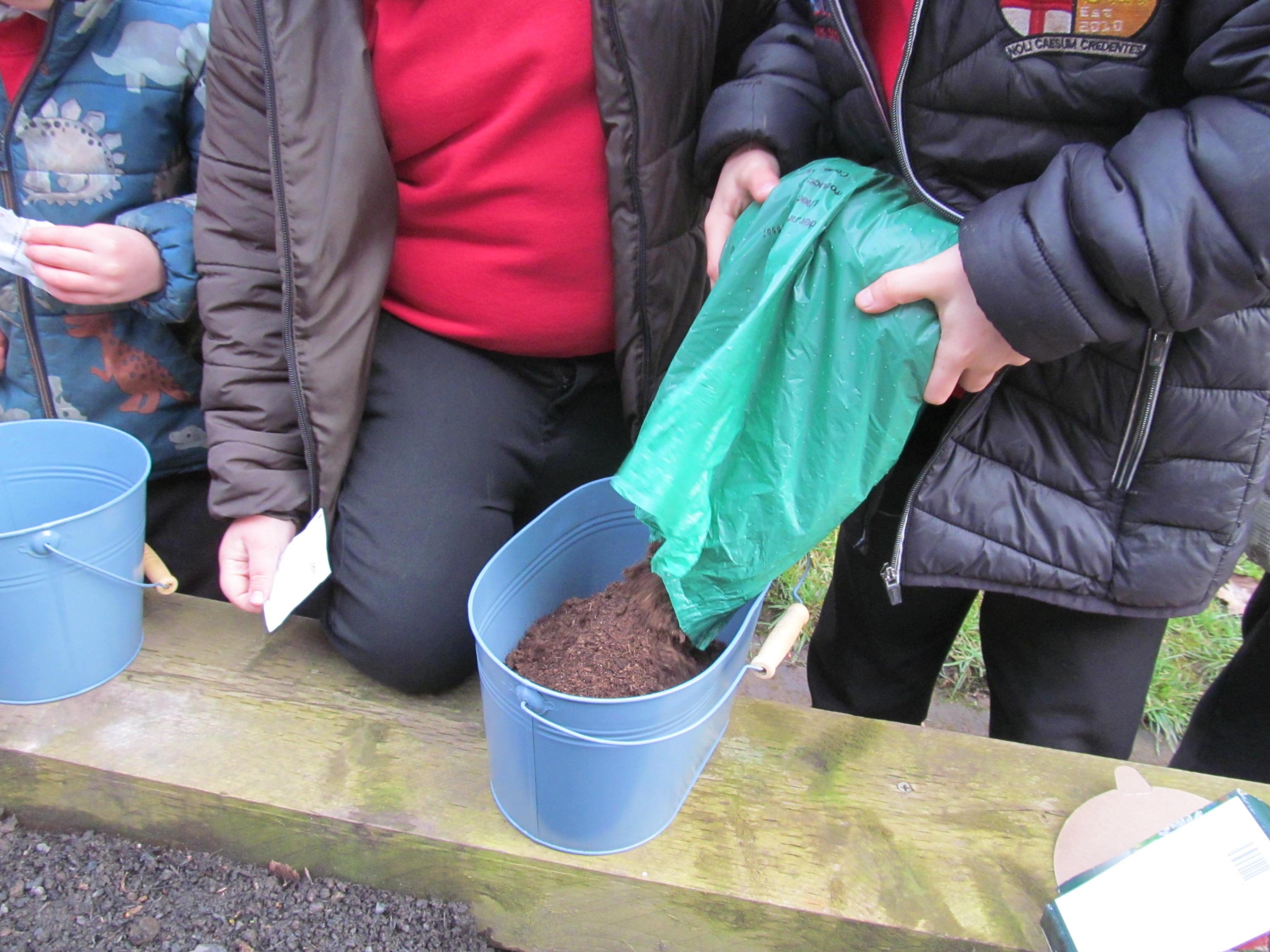 Our green fingered gardeners are now preparing the ground for our potatoes, planting up bedding plants and checking on their recently germinated seeds.
