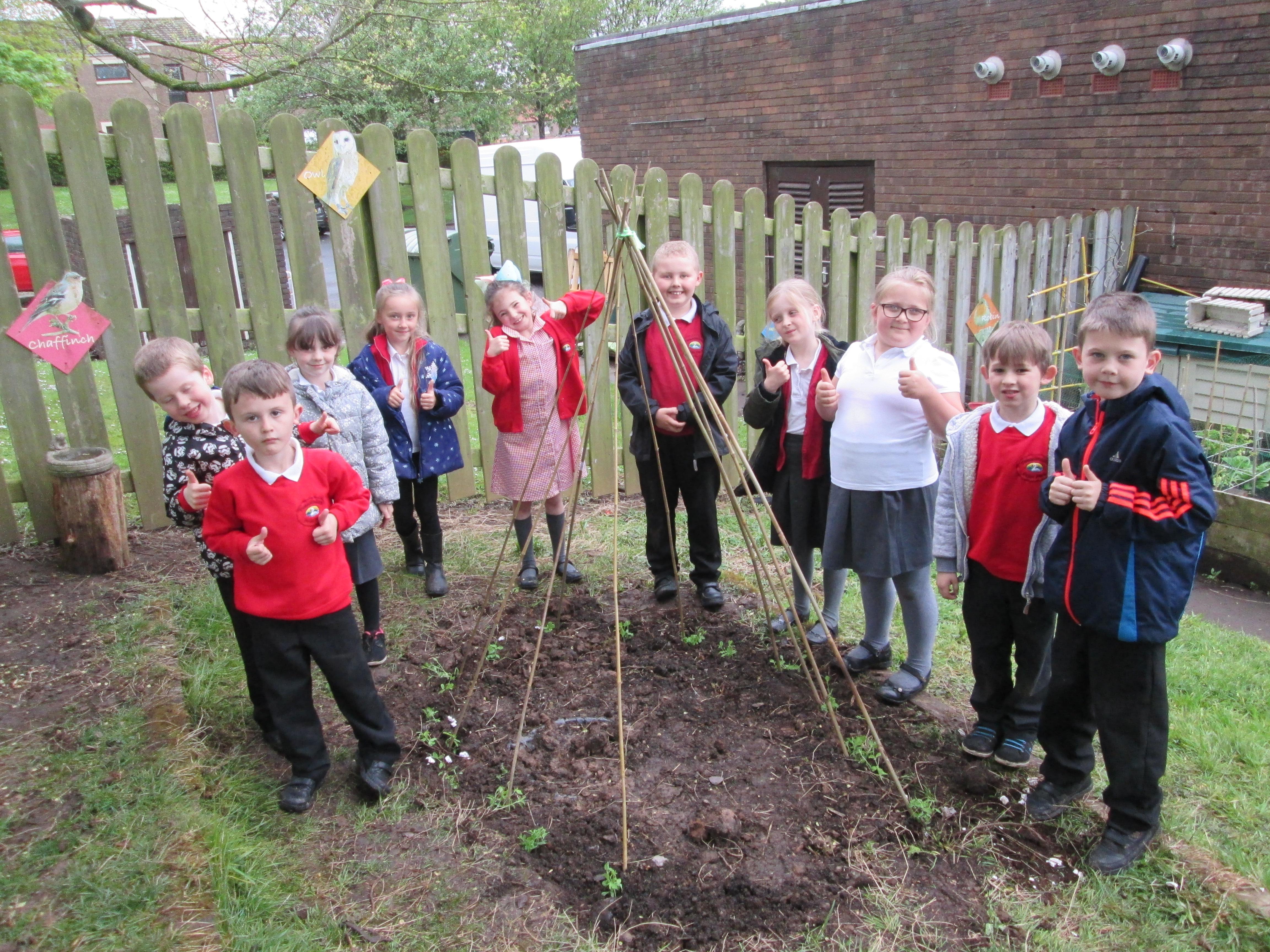 Welcome from our gardeners! Once again we have been busy, cultivating and designing, resulting in a Sweet-Pea Tee-Pee and some individual gardens which would be worthy of Chelsea Flower Show status! Well done gardeners on another fun filled term.