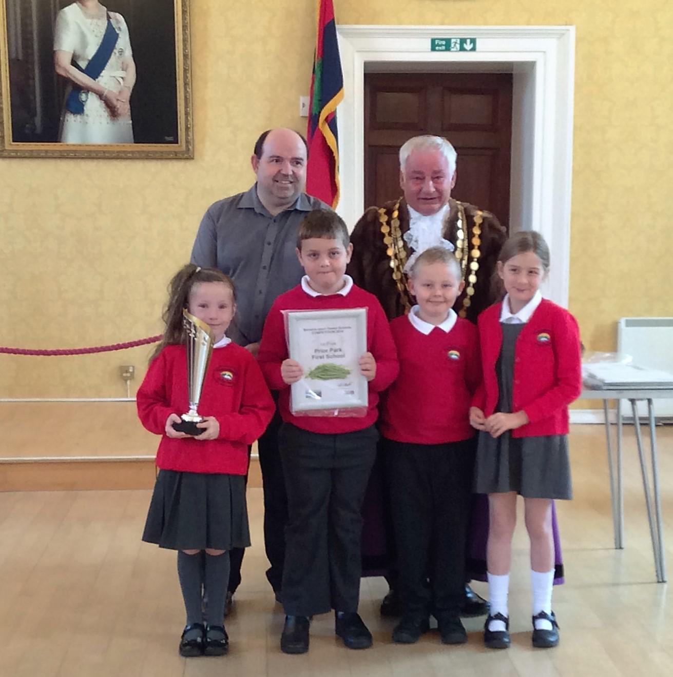 Last term the children in our gardening club planted broad beans which were harvested and then tasted by the competition judges at the end of the summer term. This term, some members of our school Gardening Club went to the Town Hall to collect the trophy for first prize for growing the best beans out of all the schools in Berwick. Well Done!