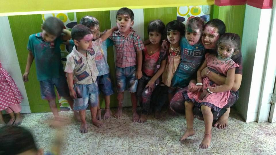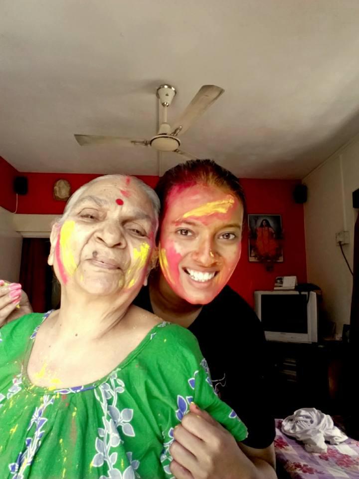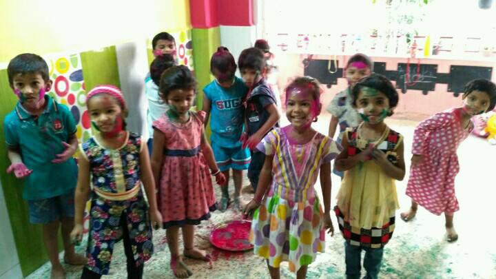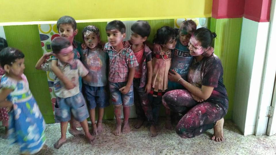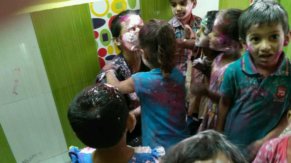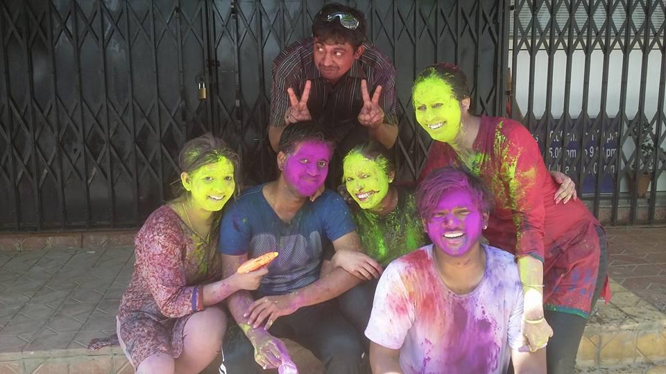 Holi celebrations with Snigdha's family and at school.